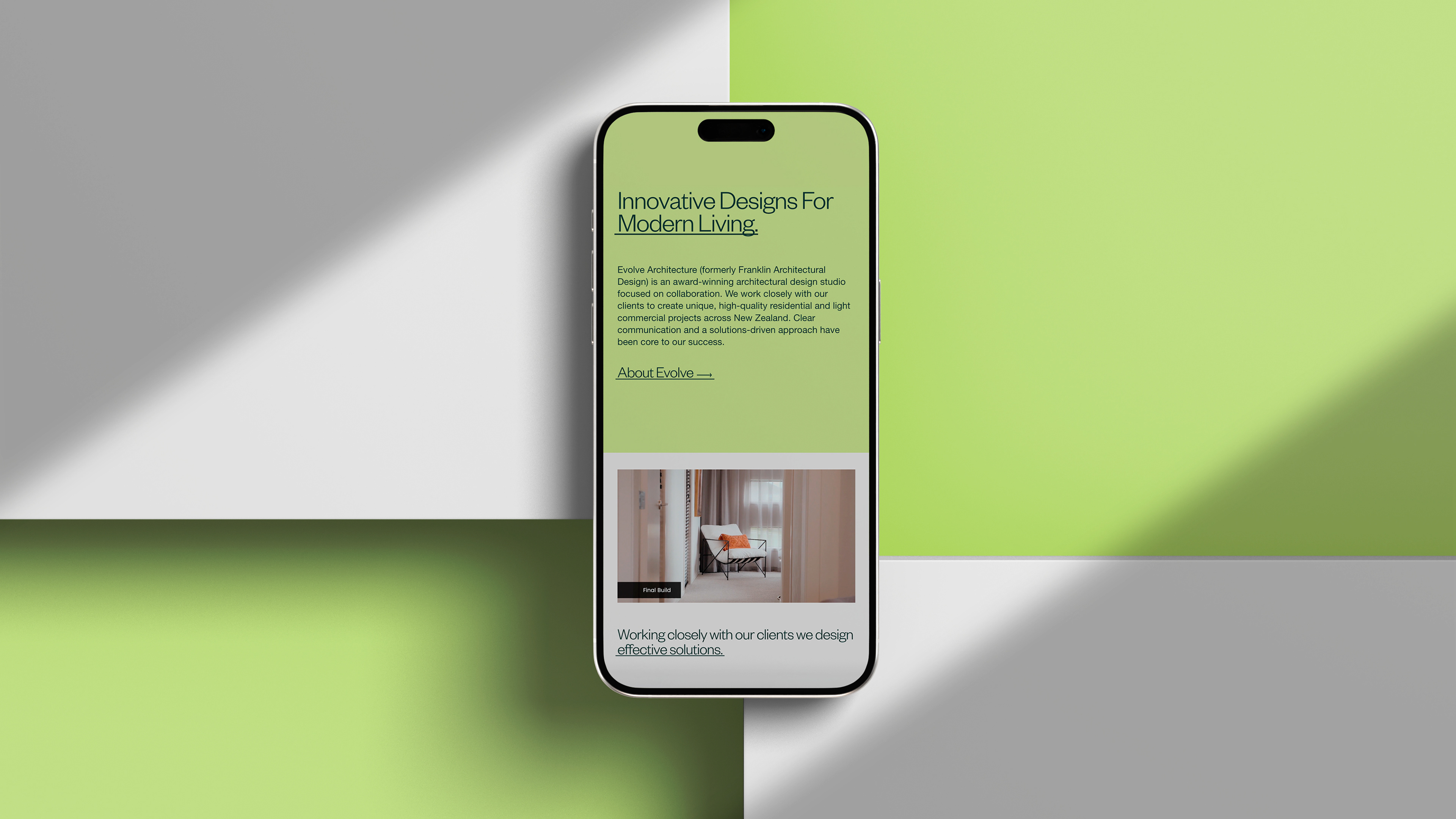 Evolve Architecture, a modern and innovative practice based in Papamoa, needed a new brand identity and website to reflect its vision. The refreshed brand and digital presence highlight its forward-thinking and contemporary approach. I worked as the lead designer and project manager on this project (in collaboration with Inkdrop Design). DELIVERABLES Brand Identity Design, Brand Collateral, Signage, Website Design